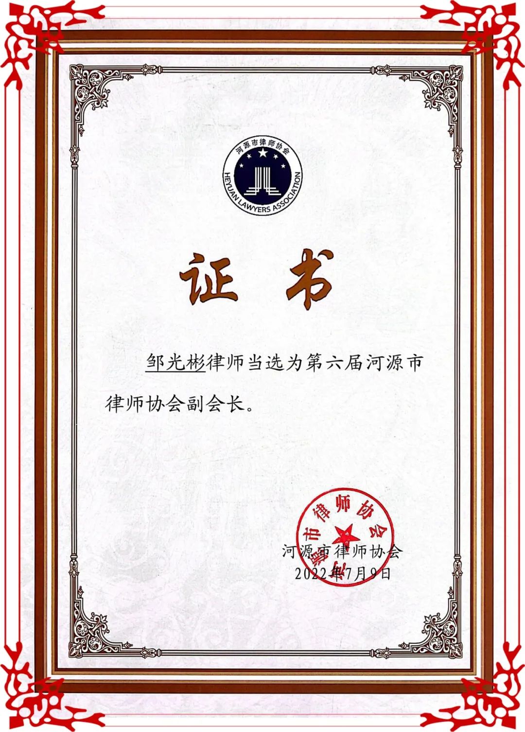 喜讯||邹光彬被选任河源市律协第六届副会長(cháng),获全市十大优秀律师和突出贡献奖